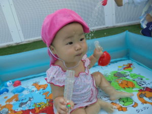 いちご組さんはプール遊びをしました。