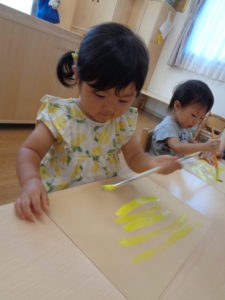 ひまわり組さんはプールの前に製作をしました。