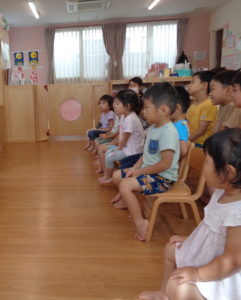今日も気持ちのよい秋晴れでしたね☀今日は9月のお誕生会とお月見会がありました。みんな椅子に座って静かに待てました(´▽`*)