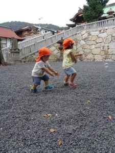 神社ではしゃぼん玉あそびをして楽しみました。