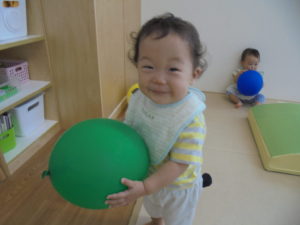 先生に絵本を読んでもらったり、風船で遊んだりして楽しく過ごすことができました♬