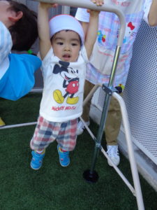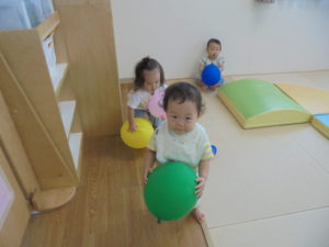はいはいしていたお友だちも少しずつ伝い歩きをがんばっています(*^-^*)