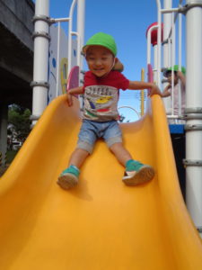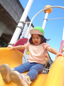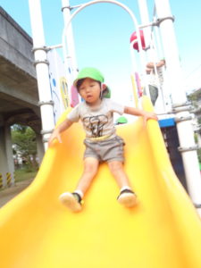近くの公園に遊びに行きました!お気に入りのすべり台でシュー!気持ち良さそう!
