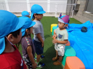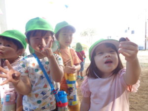 途中からひまわり組も園庭に来て、一緒に遊びました😉みんなで遊ぶと楽しいね!