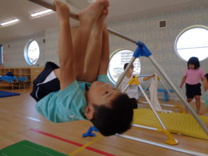 しっかりと自分一人で鉄棒を握ってぶらさがることができ、だんだん安定してきました👏