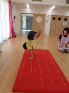 そらぐみさんは朝からバスに乗って、鉄棒や側転の練習に行ってきました✊