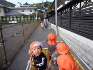 今日のいちご組さんの活動は、消防署の前を通ってぐるりとお散歩・・・
