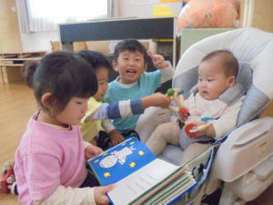 いちご組の新しいお友だちは、すっかりお兄さんお姉さんたちの人気もの♬