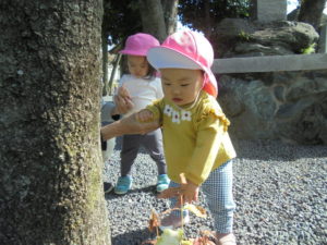 ひまわり組さんは秋の制作に取り組んでから、近くの神社へ出かけました(⌒∇⌒)