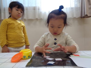 そのあとは、はさみで切ったりのりで貼ったりして、制作に真剣に取り組んでいますよ(o^―^o)