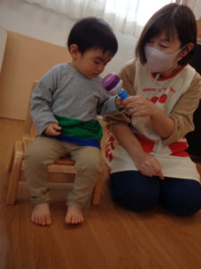 「2歳」「パトカー」と年齢や好きな玩具の名前など、保育者と一緒に発表することができました✨
