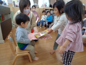 みんなでお友だちの名前を呼ぶと、前のお誕生席に座ってくれましたよ(*´▽`*)