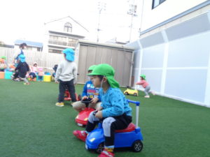 三輪車やコンビカー、砂場など好きな遊びを楽しみました☀