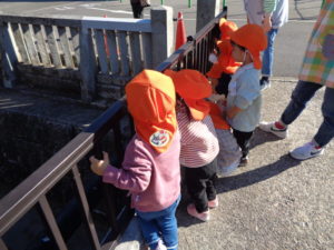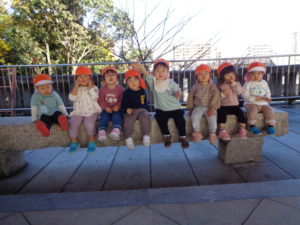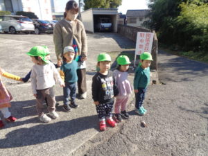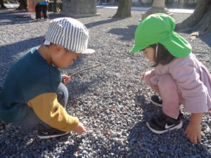 みんなで手を繋いで近くの神社付近をお散歩してきました。