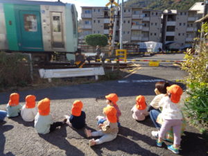 おやつを食べてからお散歩に出発!めろん組さんも電車を見ることができました!