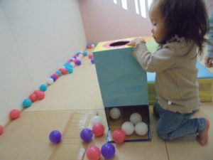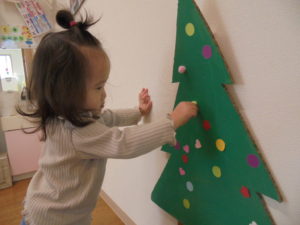 おいしいおやつの後はお部屋で遊びました。ボール遊びにツリーの飾りつけ🎄