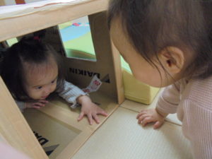 それから先生や友だちといないいないばあ!をしてかわいい笑い声が響いてきました(*^-^*)