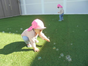 おひさまの光でしゃぼん玉がキラキラ光ってきれいだったね☆