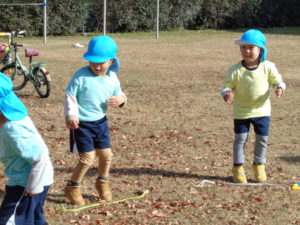 縄跳びに挑戦するぞー!と元気に準備体操を始めたそらぐみさん。