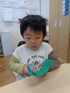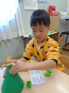 そら組さんは、ツリーとトナカイさんの顔を製作しました。貼ったり切ったり、上手に作ることができました。