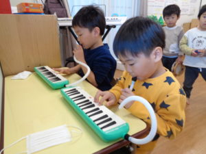 合奏の練習をしましたが、カスタネットやタンブリンをテンポを合わせたり、最後まで吹けるようになっていますね。