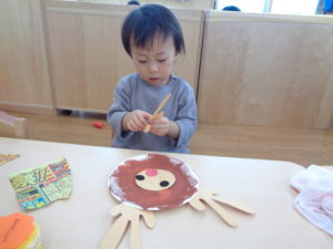 今日はトナカイさんの目や鼻を糊付けしましたよ(⌒∇⌒)
