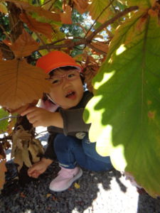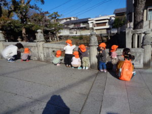 ひまわり組さんは制作活動をしてから、近くの神社へ散策にでかけました。