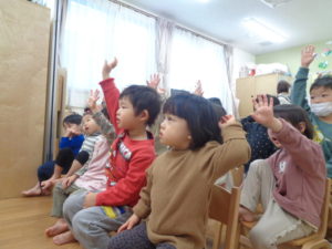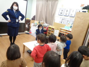 大切な約束をおしえてえもらいました。交通先生からクイズが出されると大きな声で答えることができているお友達もいました。