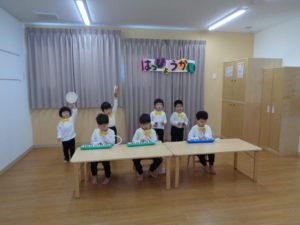 カスタネットやタンブリンを打つタイミング、鍵盤ハーモニカもドレミを頑張って覚えたね★