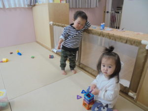 磁石のブロックがくっつくことが不思議で、何度もくっつけたり、離したりして楽しんでいました。