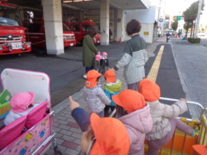 訓練が終わって、いちご組さんと仲良く園周辺をお散歩しました。