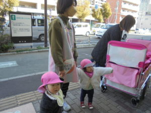 周辺のお散歩にいくと、保育者としっかり手を繋いで園まで自分で歩いて帰れるようになりました✨