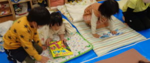 給食を食べたあと、午睡前のひと時に5歳児のお兄さん達が一緒に絵本を読んでくれます📖