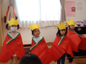 その後は3月の誕生児さんがかわいいお雛様とお内裏様になって踊りを披露してくれました。