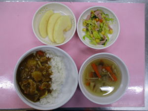 いっぱい遊んだ後は、みんながいつも楽しみにしている給食の時間です!