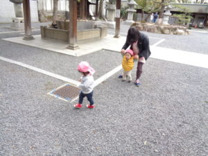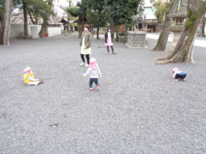 そんな寒さに負けず、いちご組さんは神社までお散歩してきました!