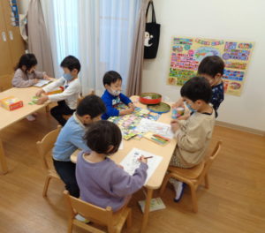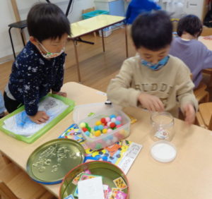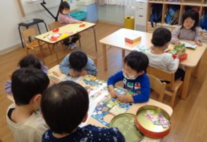 そら組の先輩の4,5歳児さん達に教えてもらいながら、一緒に仲良く遊ぶ姿が微笑ましいです♪♪