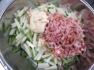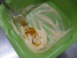 マヨネーズとカレー粉をよく混ぜ合わせます。