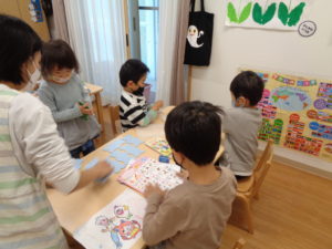 保育室でカードゲームやおはしの練習などをしていたそら組のお友だち。
