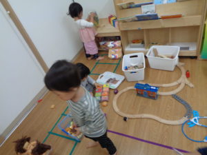 大好きな電車をたくさんつないで走らせているお友だちもいましたよ🥰