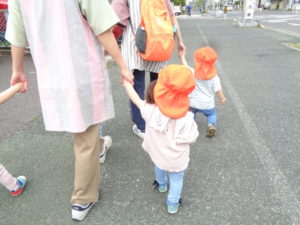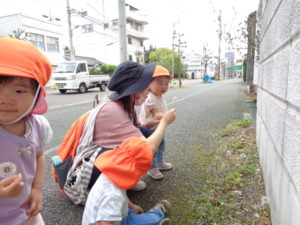 道に咲いている小さなお花や道路を通る大きな車に興味を持ち、指を差して先生に教えてくれる子がいました。