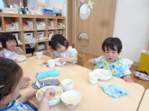 たくさん遊んだ後は、待ちに待った給食の時間です♪