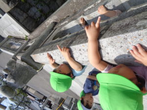 今日のめろん組さんは、製作をしたり八幡神社へお散歩に出かけました。