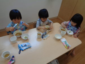 「ちゅるちゅる~」と喜んで器はピッカピカになりましたよ。今日も美味しい給食ごちそうさまでした。