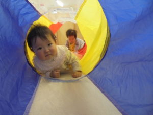 お友だちがしていることをじーと見つめたり、後を追ったりして楽しく遊ぶことができました。