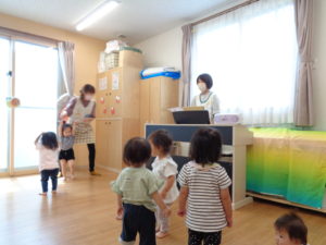 月の始めの水曜日は0~2歳児クラスのリトミックの日です♪