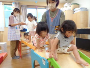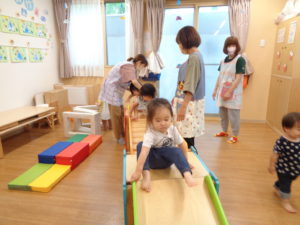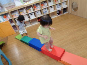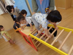 お外では遊べませんが、室内ジムを使ってしっかりと体を動かして遊びましたよ。