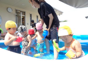 プールの他にも色水遊びやペインティング、洗濯ごっこ、氷遊び、片栗粉スライム、寒天など、様々な夏ならではの遊びを楽しんでいますよ🎨🖌