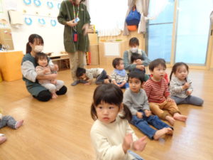 音に合わせて手を叩いたり、ぴたっと止まったりする動きを楽しみました⛄