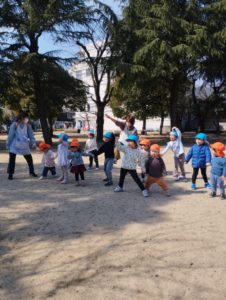 そらぐみさんは、ひまわり組さんと一緒に公園に行きました。